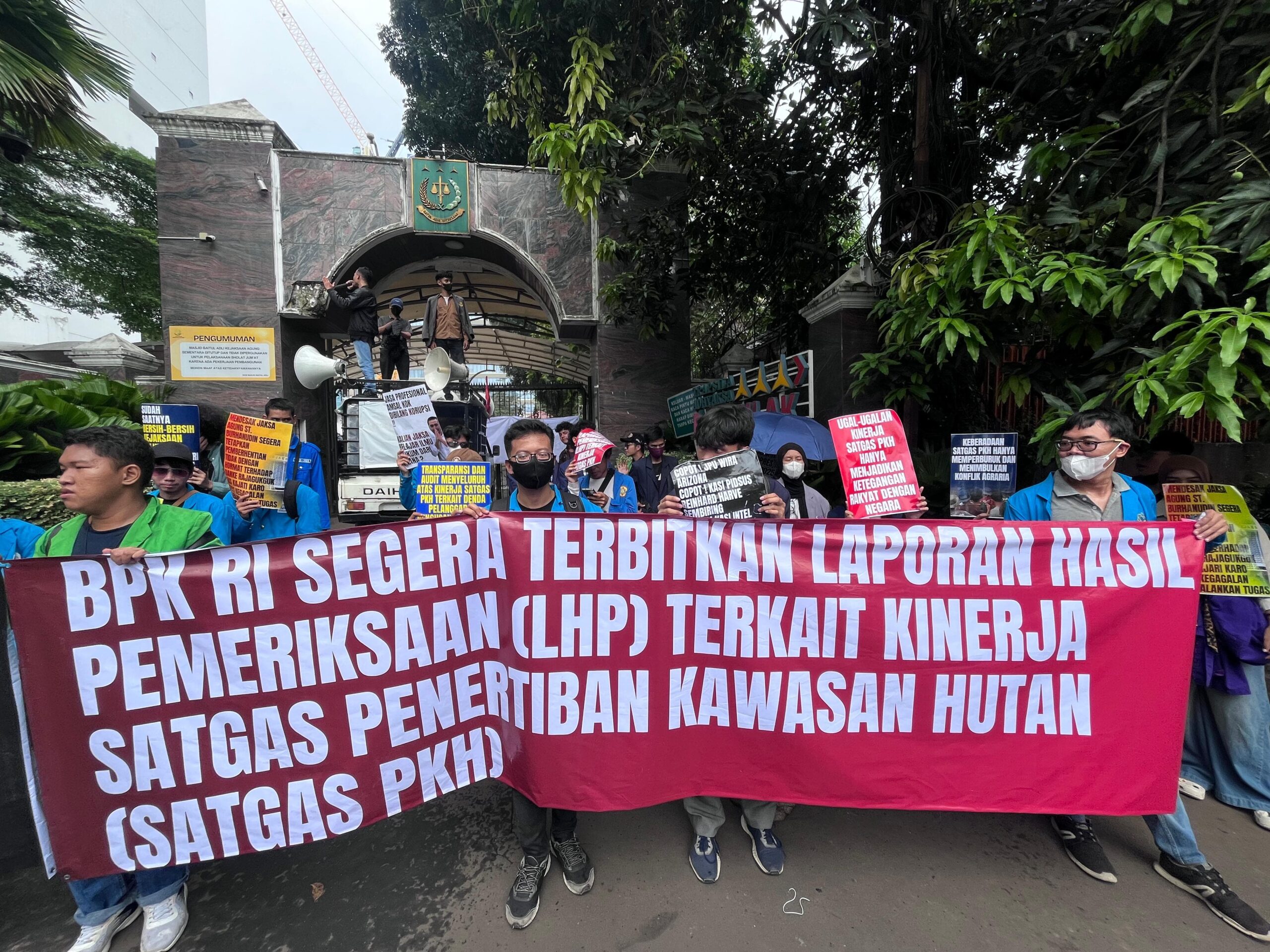 Menurut mereka, tindakan Satgas PKH yang melakukan penertiban kawasan hutan, termasuk pemasangan plang di lahan masyarakat, dinilai memicu ketegangan di lapangan. Mahasiswa juga menyoroti perlunya prosedur hukum yang jelas dalam setiap penyitaan aset.